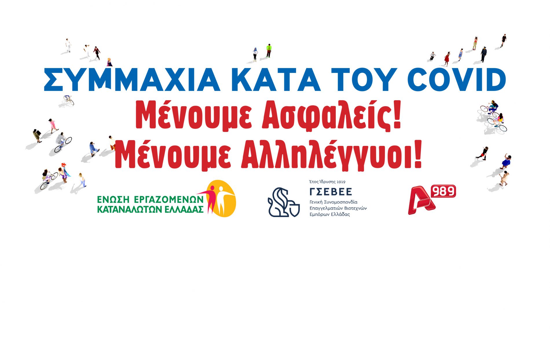 Στο πλαίσιο αυτό, η Ένωση Εργαζομένων Καταναλωτών Ελλάδας της ΓΣΕΕ σε συνεργασία με τη Γενική Συνομοσπονδία Επαγγελματιών Βιοτεχνών Εμπόρων Ελλάδας (ΓΣΕΒΕΕ) και το ραδιοφωνικό σταθμό Alpha98,9 αναλαμβάνει πρωτοβουλία για τη στήριξη κοινωνικών ευπαθών ομάδων που δοκιμάζονται από την πανδημία και καλεί τις επιχειρήσεις να συμμετάσχουν στη δράση με τίτλο «Συμμαχία κατά του Covid» προσφέροντας εκπτώσεις στις τιμές των προϊόντων και των υπηρεσιών που προσφέρουν, σε όσους καταναλωτές διαθέτουν, κάρτα ανεργίας, πολυτέκνων, φοιτητική, ΑΜΕΑ και έντυπο αναστολής εργασίας.