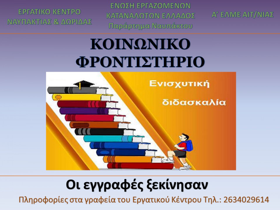 This action of the Local Office of  Nafpaktia-Dorida concerns the access and coordination of teachers-volunteers, pensioners, unemployed and employed that offer free lessons to students whose family income is extremely low, because either one parent is unemployed or both parents are unemployed and they can not bare the costs of the tutoring (social private school).