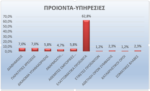 Έως σήμερα, η Ένωση έχει διαχειριστεί πληθώρα καταγγελιών που αφορούν τον τομέα Προϊόντα-Υπηρεσίες. Η συντριπτική πλειοψηφία των καταγγελιών αυτής της κατηγορίας, αφορούν ελαττωματικά προϊόντα, αγγίζοντας το εντυπωσιακό ποσοστό του 62,8% του συνόλου των καταγγελιών της συγκεκριμένης κατηγορίας.