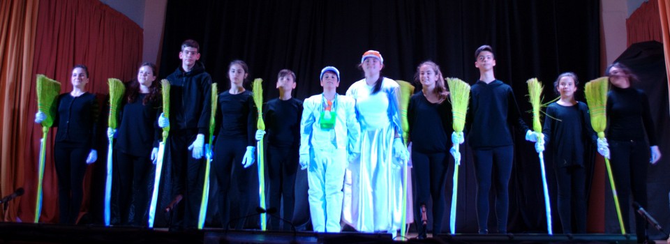 Το πρώτο μέρος της θεατρικής βραδιάς το τμήμα εφήβων παρουσίασε την παράσταση μαύρου θεάτρου «ΣΚΟΥΠΑ ΕΙΝΑΙ ΚΑΙ …ΓΥΡΙΖΕΙ».