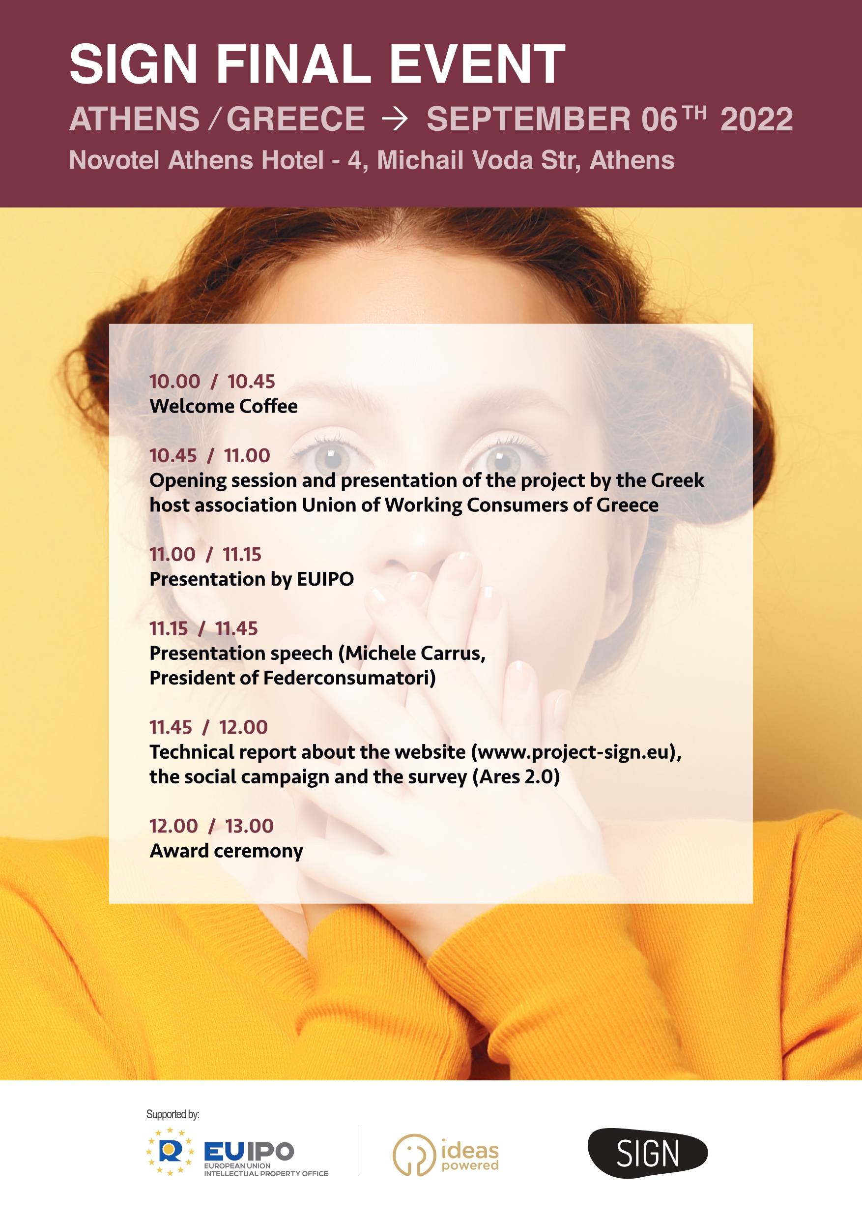 Το SIGN είναι ένα έργο στο οποίο συμμετέχουν οκτώ οργανώσεις καταναλωτών σε οκτώ χώρες: Ιταλία, Βουλγαρία, Ελλάδα, Ισπανία, Ρουμανία, Κροατία, Λετονία και Λιθουανία. Στόχος του είναι να αυξήσει την αντίληψη των νέων καταναλωτών σχετικά με την αξία των δικαιωμάτων πνευματικής ιδιοκτησίας.