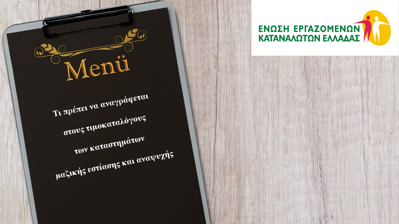 Με αφορμή δημοσιεύματα για παραβατικές πρακτικές εστιατορίων και γενικά καταστημάτων εστίασης, αναφορικά με την εφαρμογή της νομοθεσίας που αφορά τους Κανόνες Διακίνησης και Εμπορίας Προϊόντων και Παροχής Υπηρεσιών επισημαίνουμε ποιες είναι οι ενδείξεις που πρέπει να αναγράφονται υποχρεωτικά στους τιμοκαταλόγους των καταστημάτων αυτών: